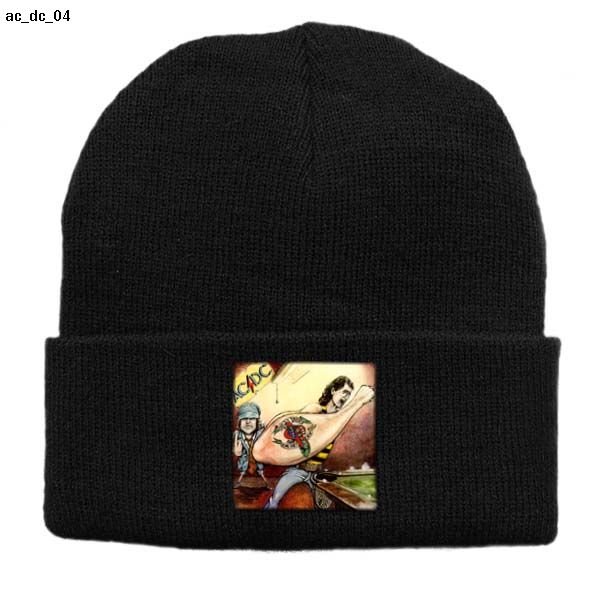 Czapka z wełny akrylowej w kolorze czarnym z nadrukiem zespołu AC/DC.
