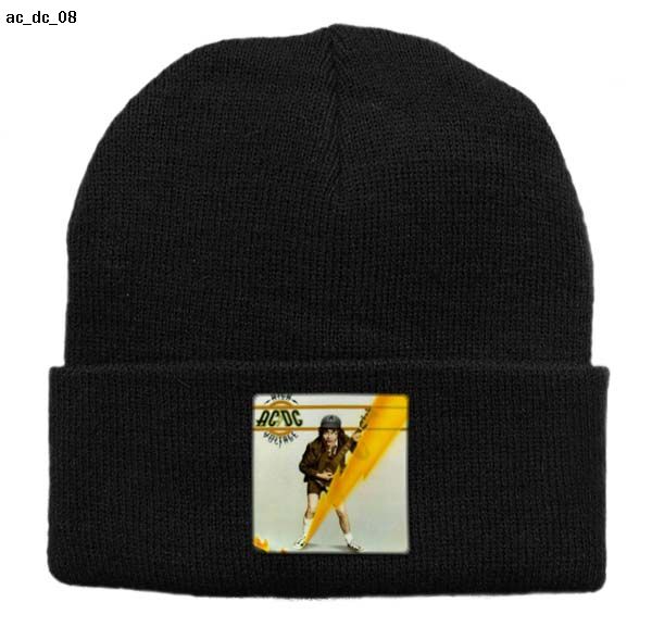 Czapka z wełny akrylowej w kolorze czarnym z nadrukiem zespołu AC/DC.