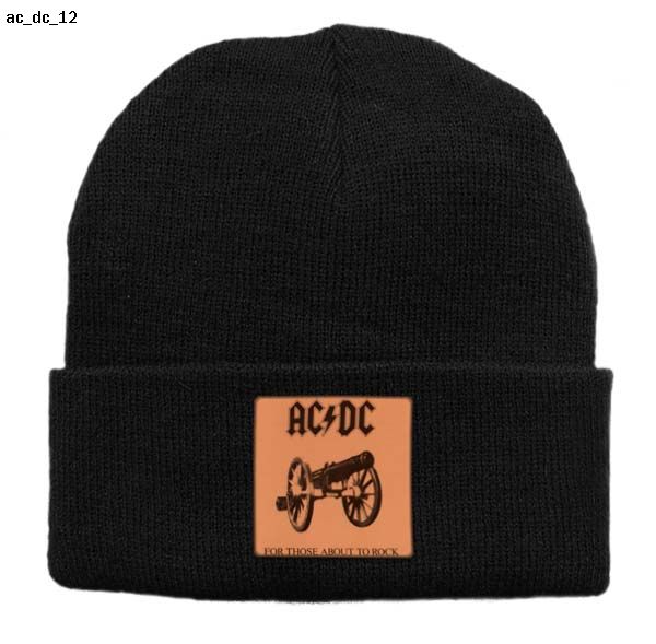 Czapka z wełny akrylowej w kolorze czarnym z nadrukiem zespołu AC/DC.