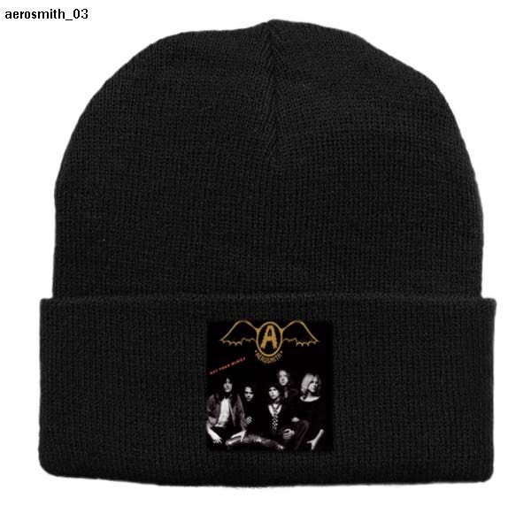 Czapka z wełny akrylowej w kolorze czarnym z nadrukiem zespołu Aerosmith.