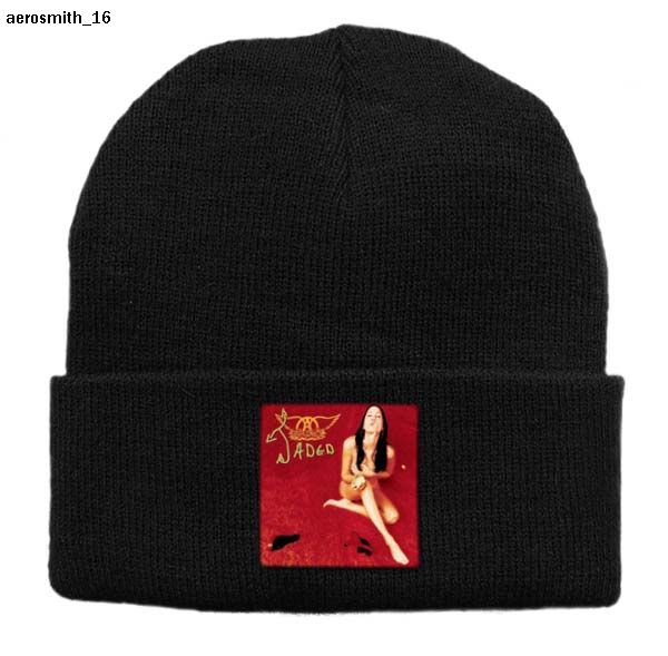 Czapka z wełny akrylowej w kolorze czarnym z nadrukiem zespołu Aerosmith.