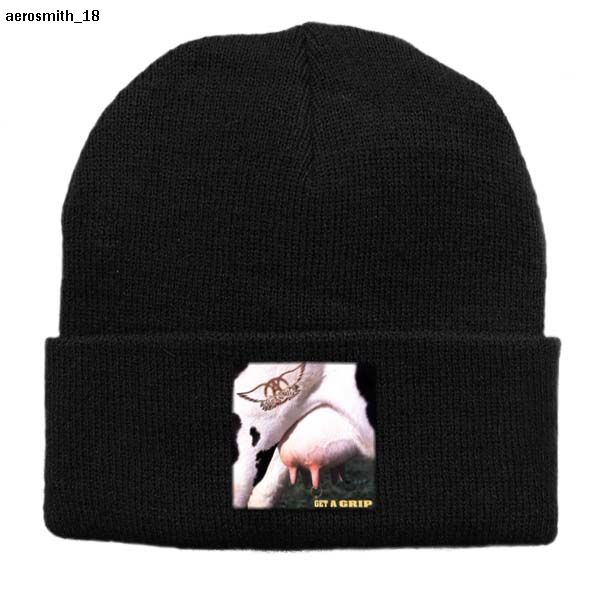 Czapka z wełny akrylowej w kolorze czarnym z nadrukiem zespołu Aerosmith.