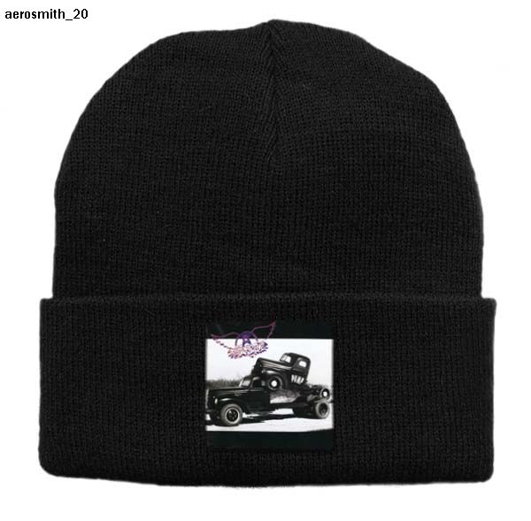 Czapka z wełny akrylowej w kolorze czarnym z nadrukiem zespołu Aerosmith.