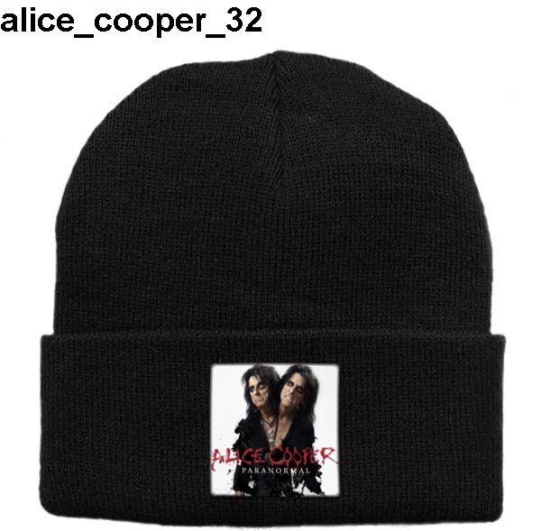 Czapka z wełny akrylowej w kolorze czarnym z nadrukiem zespołu ALICE COOPER.