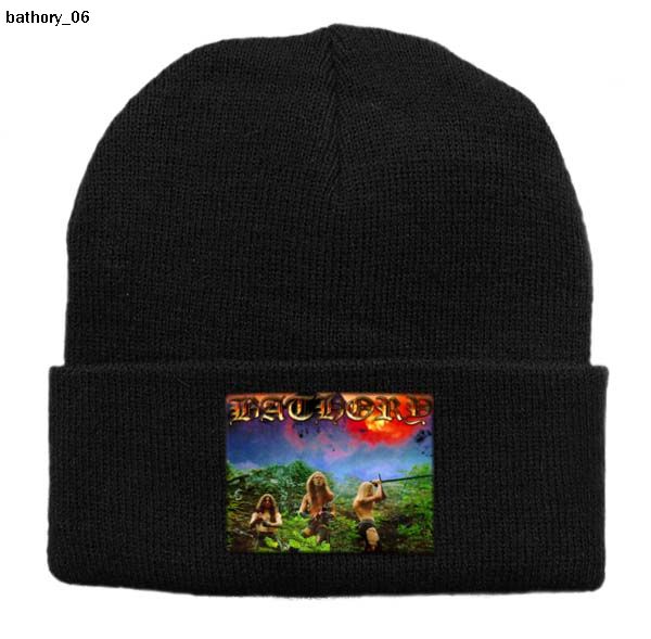 Czapka z wełny akrylowej w kolorze czarnym z nadrukiem zespołu BATHORY.