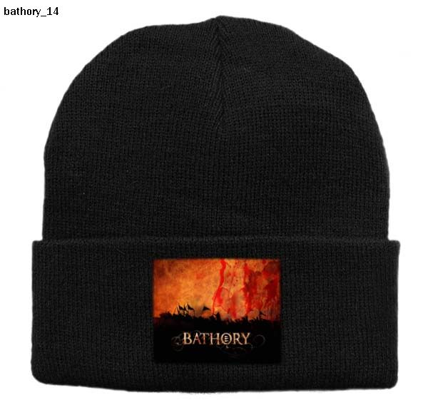 Czapka z wełny akrylowej w kolorze czarnym z nadrukiem zespołu BATHORY.