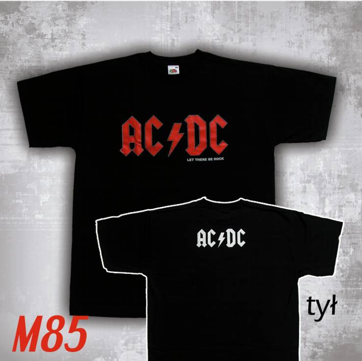 Koszulka z logo zespołu AC/DC oraz tektem nawiązującym do ich trzeciego albumu - "Let There Be Rock"