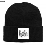 Czapka z wełny akrylowej w kolorze czarnym z grafiką Korn - amerykańska grupa muzyczna wykonująca nu metal.