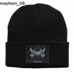Czapka z wełny akrylowej w kolorze czarnym z grafiką loga Mayhem – norweska grupa muzyczna wykonująca black metal, zaliczana do prekursorów gatunku