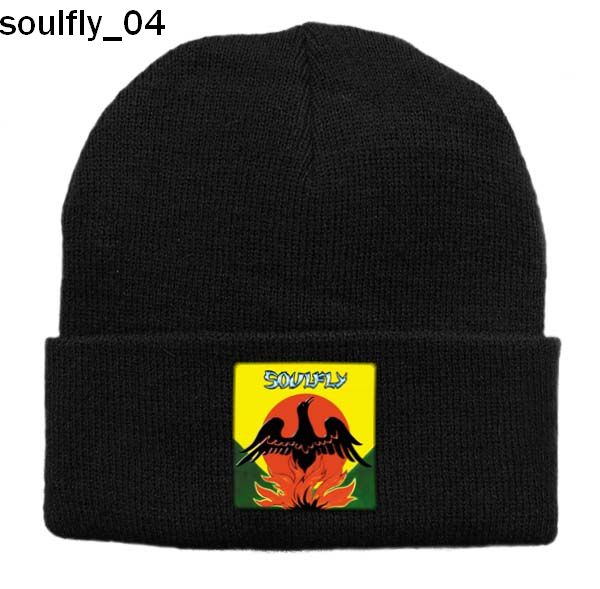 Czapka z wełny akrylowej w kolorze czarnym, z okładką amerykańskiej Soulfly pod tytułem "Primitive"