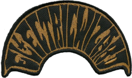 Prasowanka w kolorze złotym z logoElectric Wizard – doom metalowego zespół z Dorset, w Angliij.