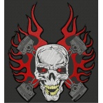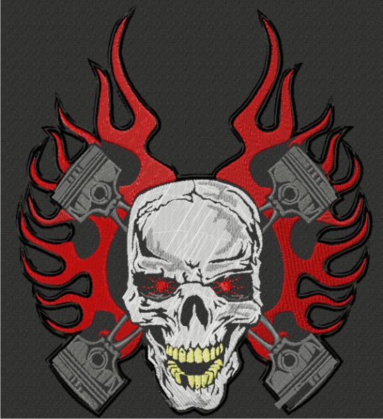 Haftowany ekran z czachą motocyklową w płomieniach