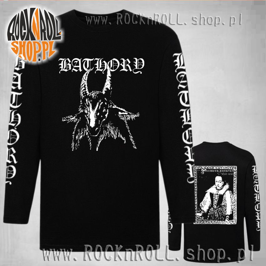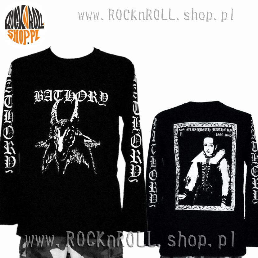 Koszulka z długim rękawem z okładką płyty "Bathory" zespołu o tej samej nazwie. Z tyłu widoczna jest postać krwawej baronowej z Čachtic