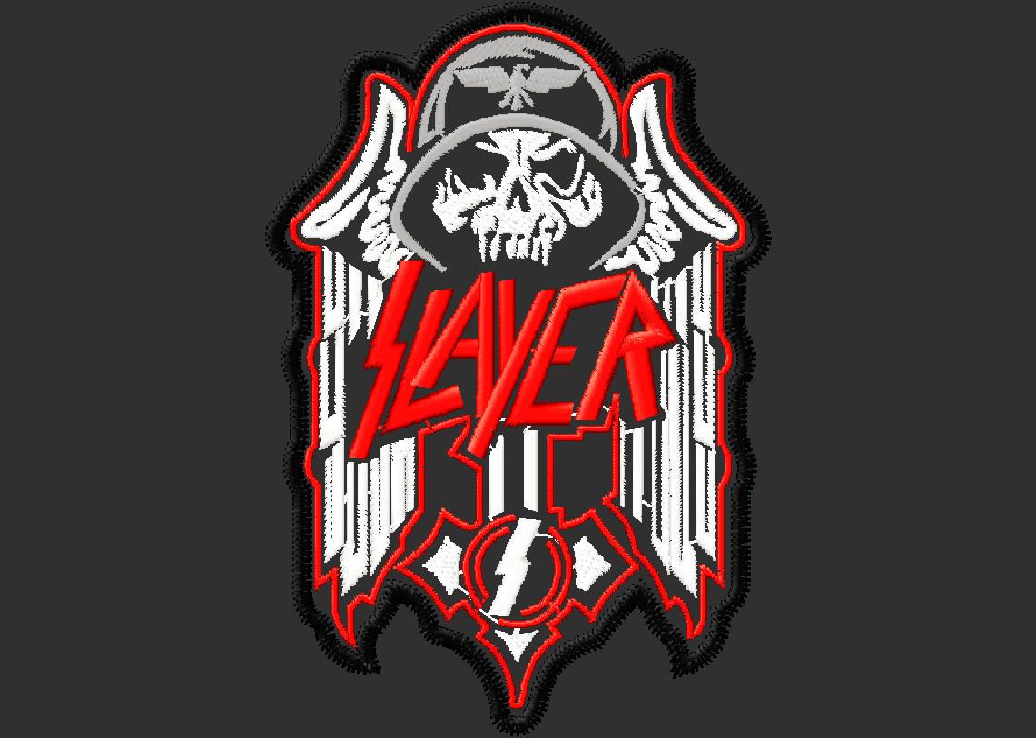 Grafika przedstawia logo i sławną czaszkę Wermachtu grupy Slayer
