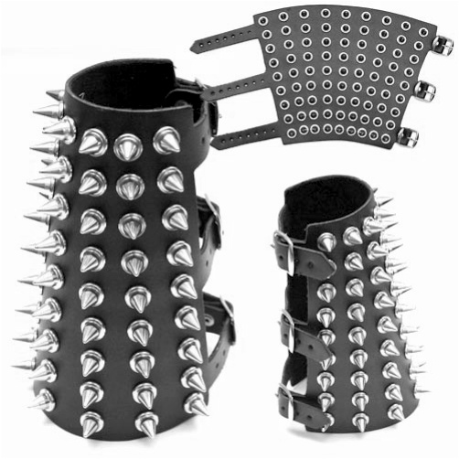 Karwasz 9-rzędowy, wykonany ze skóry naturalnej, podbijanej delikatnym zamszem. Nabijany ćwiekami typu spike