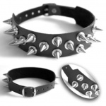 Obroża 3-rzędowa. Wykonana ze skóry naturalnej podklejonej delikatnym zamszem. Nabijana naprzemiennie ćwiekami typu Spike