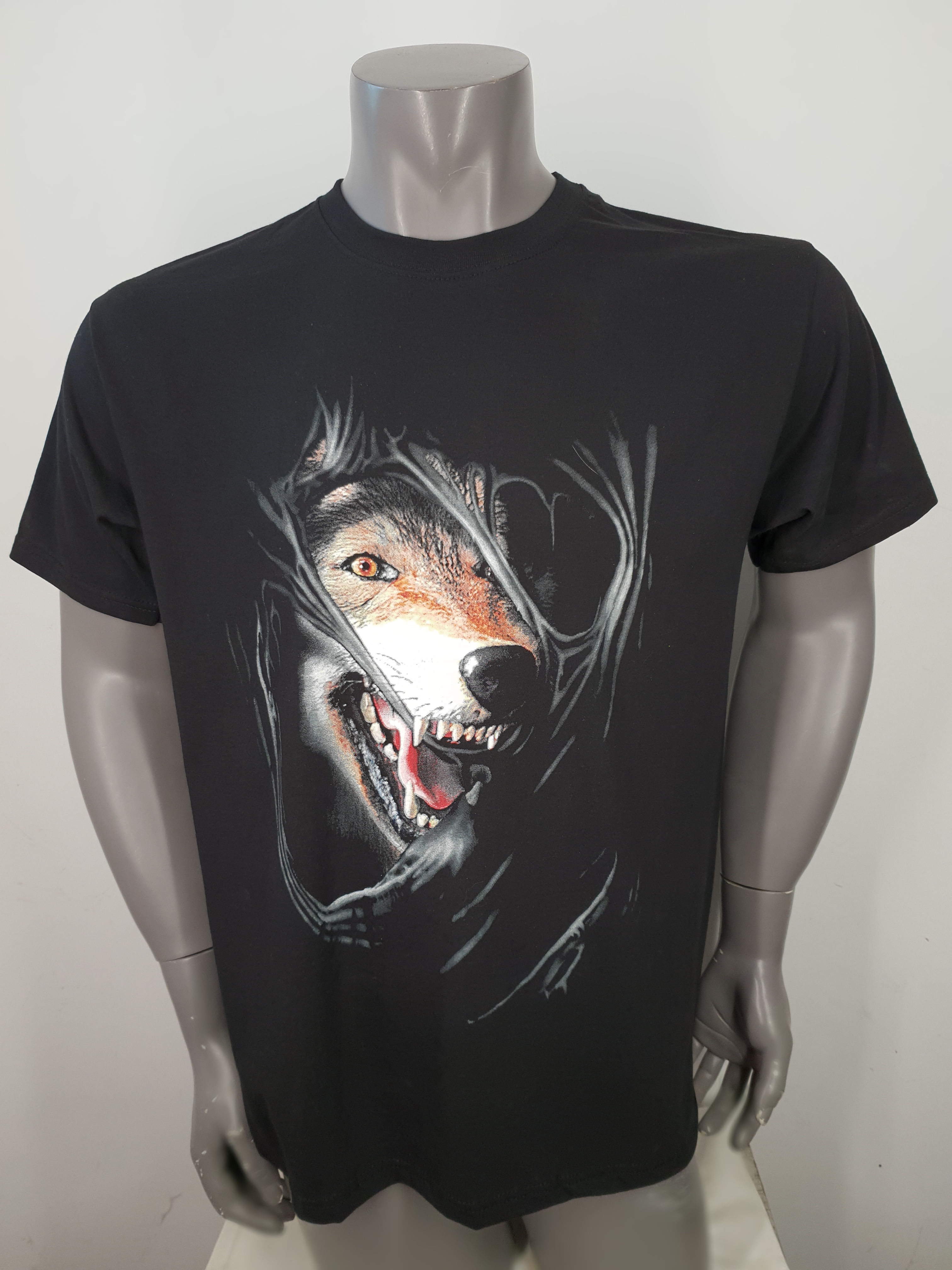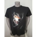 Czarny i wygodny t-shirt z grafiką przedstawiającą wilka