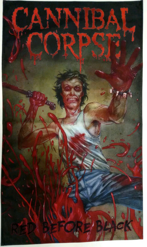 Flaga Cannibal Corpse, amerykańskiej grupy wykonującej death metal. Grafika przedstawia album Red Before Black.