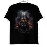 Koszulka męska w kolorze czarnym ze wzorem nuklearnej czaszki wśród gazu.