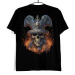 Koszulka męska w kolorze czarnym ze wzorem przedstawiającym piekielnego korsarza płonącego w przeraźliwym ogniu.