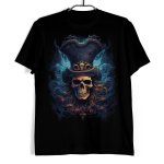 Koszulka męska w kolorze czarnym ze wzorem przedstawiającym piekielnego korsarza płonącego w przeraźliwym ogniu.