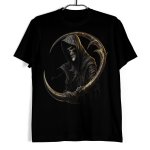 Koszulka męska w kolorze czarnym ze wzorem przedstawiającym pogrążoną w mroku śmierć otoczoną złotawą kosą.