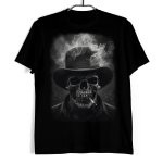 Koszulka męska w kolorze czarnym ze wzorem przedstawiającym gangsterską czaszkę palącą papierosa.