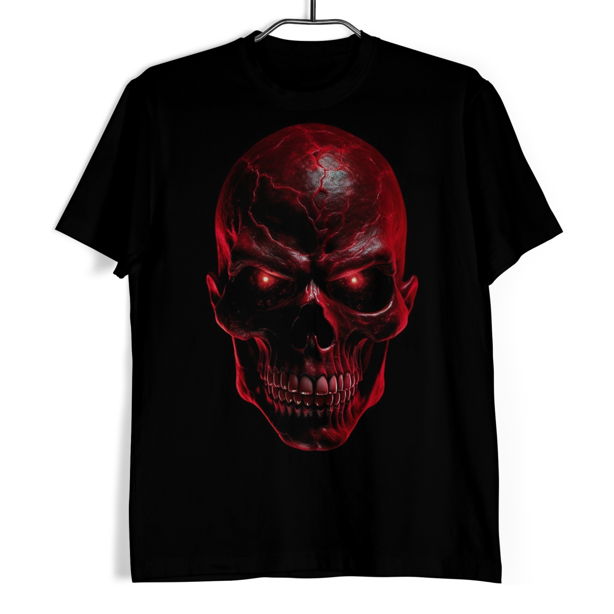 Koszulka męska w kolorze czarnym ze wzorem przedstawiającym czerwoną twarz diabła.