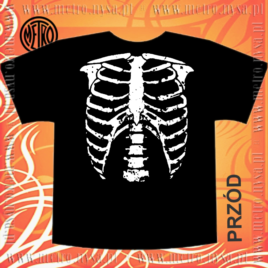 Mroczna zabawa z nadrukiem. Klatka piersiowa od przodu, szkielet.