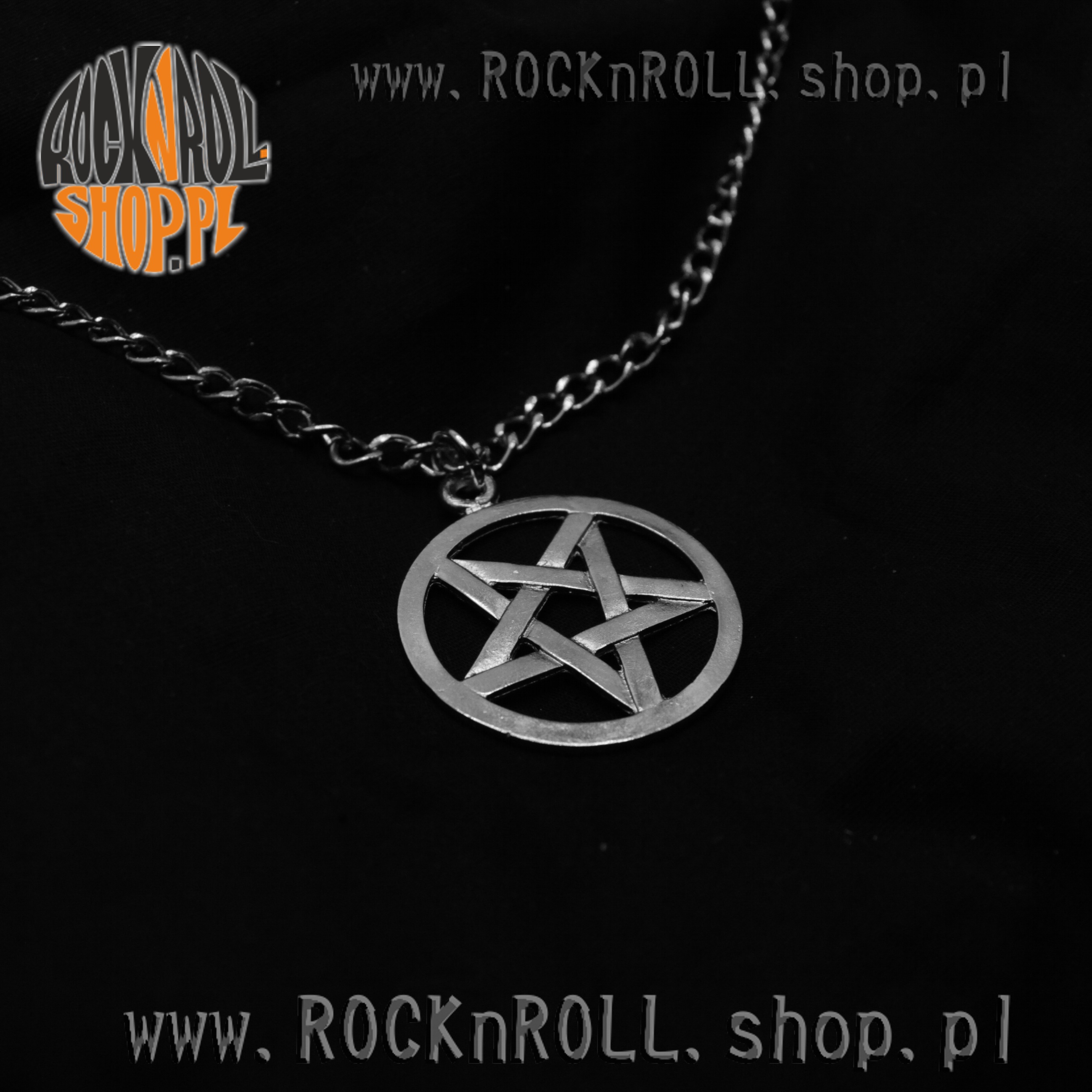 Wisior/ naszyjnik z zawieszką Pentagramu Czarnego na solidnym łańcuchu.