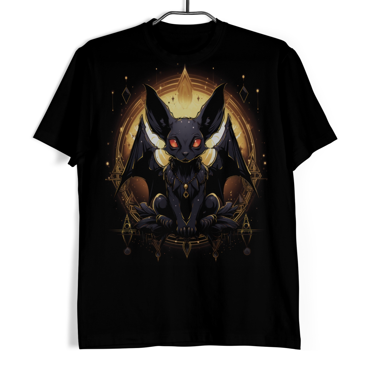 Koszulka męska w kolorze czarnym ze wzorem przedstawiającym graficznego, demonicznego nietoperza, króla piekieł.