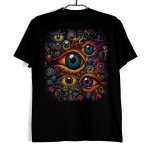 Koszulka męska w kolorze czarnym ze wzorem przedstawiającym kompozycję kolorowych oczu.
