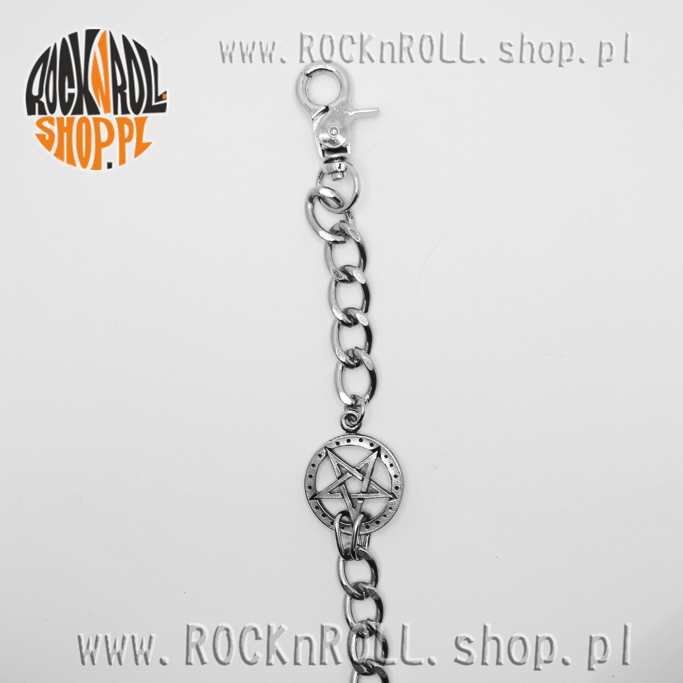 Łańcuch posiada mocny karabińczyk z jednej strony, a z drugiej kółko do zapinania o szlufkę w spodniach.