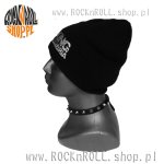 Czapka z wełny akrylowej w kolorze czarnym z haftem.