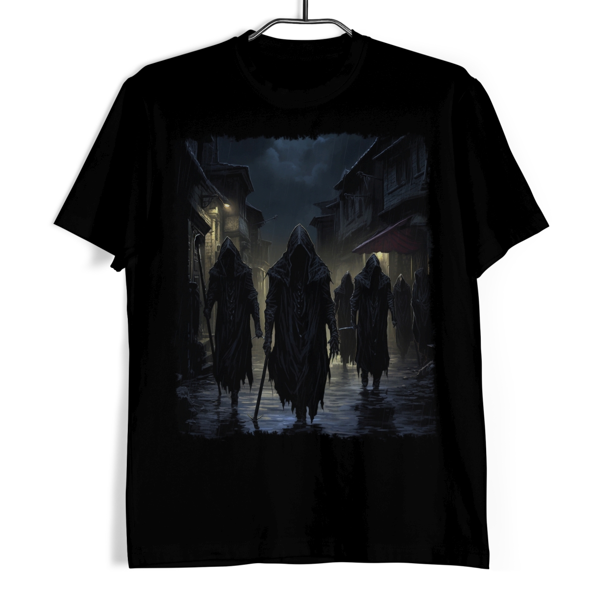 Koszulka męska w kolorze czarnym ze wzorem przedstawiającym zakapturzone postacie niczym z filmu "Władca Pierścieni".