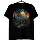 Koszulka męska w kolorze czarnym ze wzorem przedstawiającym górski pejzaż zachodu słońca.
