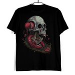Koszulka męska w kolorze czarnym ze wzorem graficznym przedstawiającym potworną kompozycję psychodelicznej grafiki.