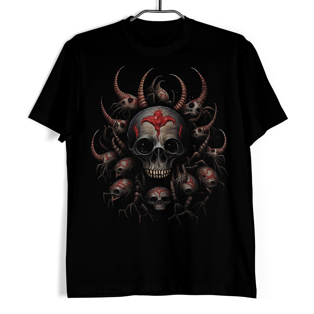 Koszulka męska w kolorze czarnym ze wzorem przedstawiającym czaszki z robakami.