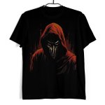 Koszulka męska w kolorze czarnym ze wzorem przedstawiającym postać niczym z sekty.