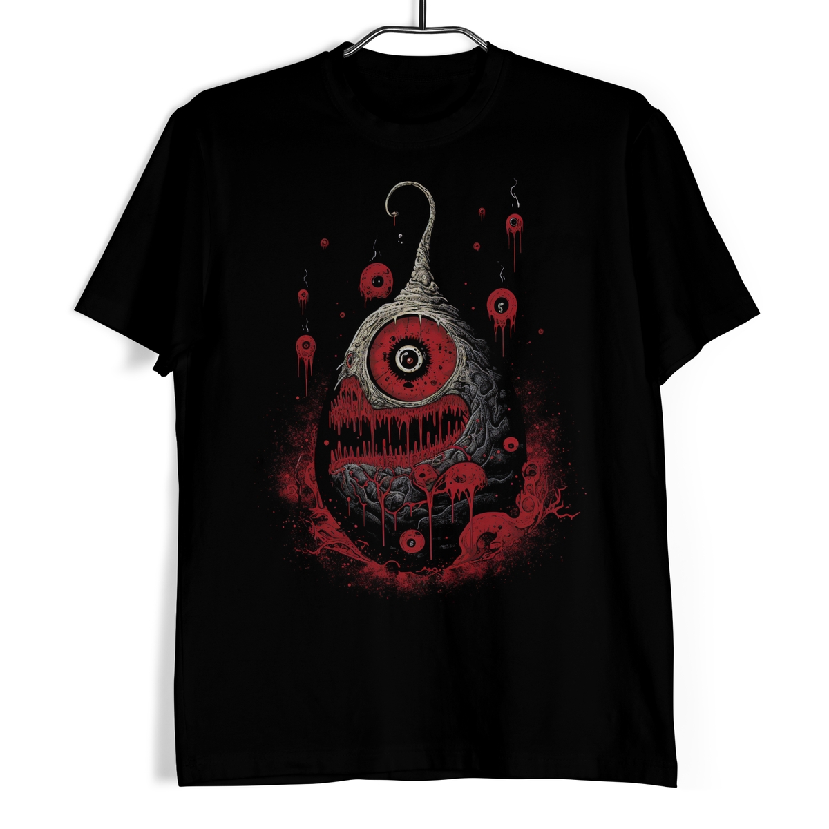 Koszulka męska w kolorze czarnym ze wzorem przedstawiającym krwawego potwora.
