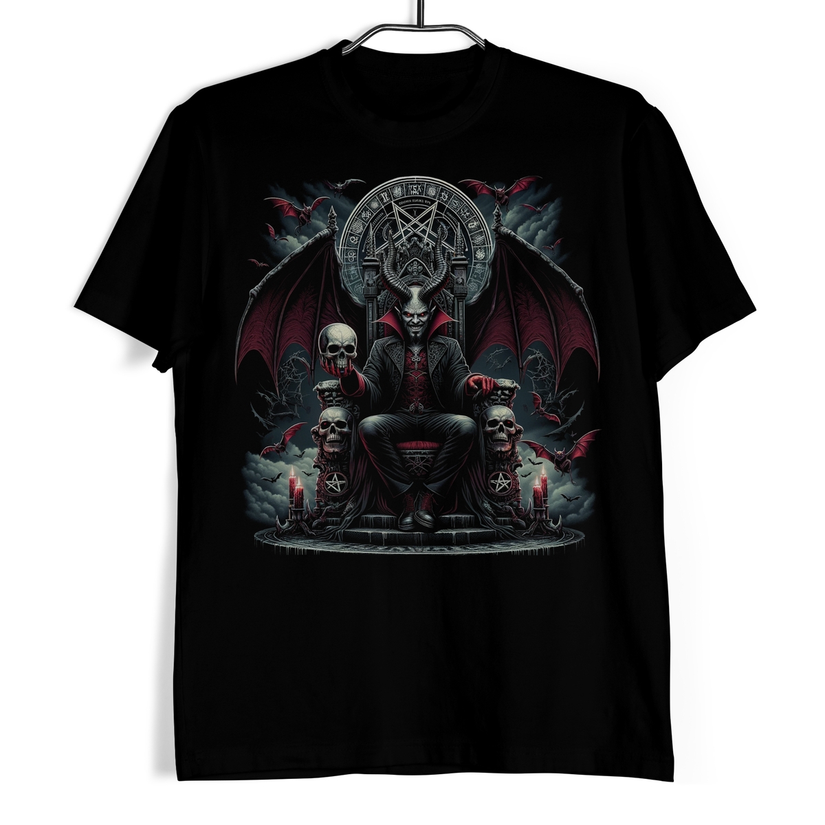 Koszulka męska w kolorze czarnym ze wzorem parszywego diabła na piekielnym tronie.