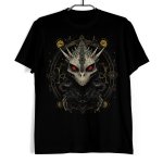 Koszulka męska w kolorze czarnym z nadrukiem przerażającej smoczycy w czerwonymi ślepiami.