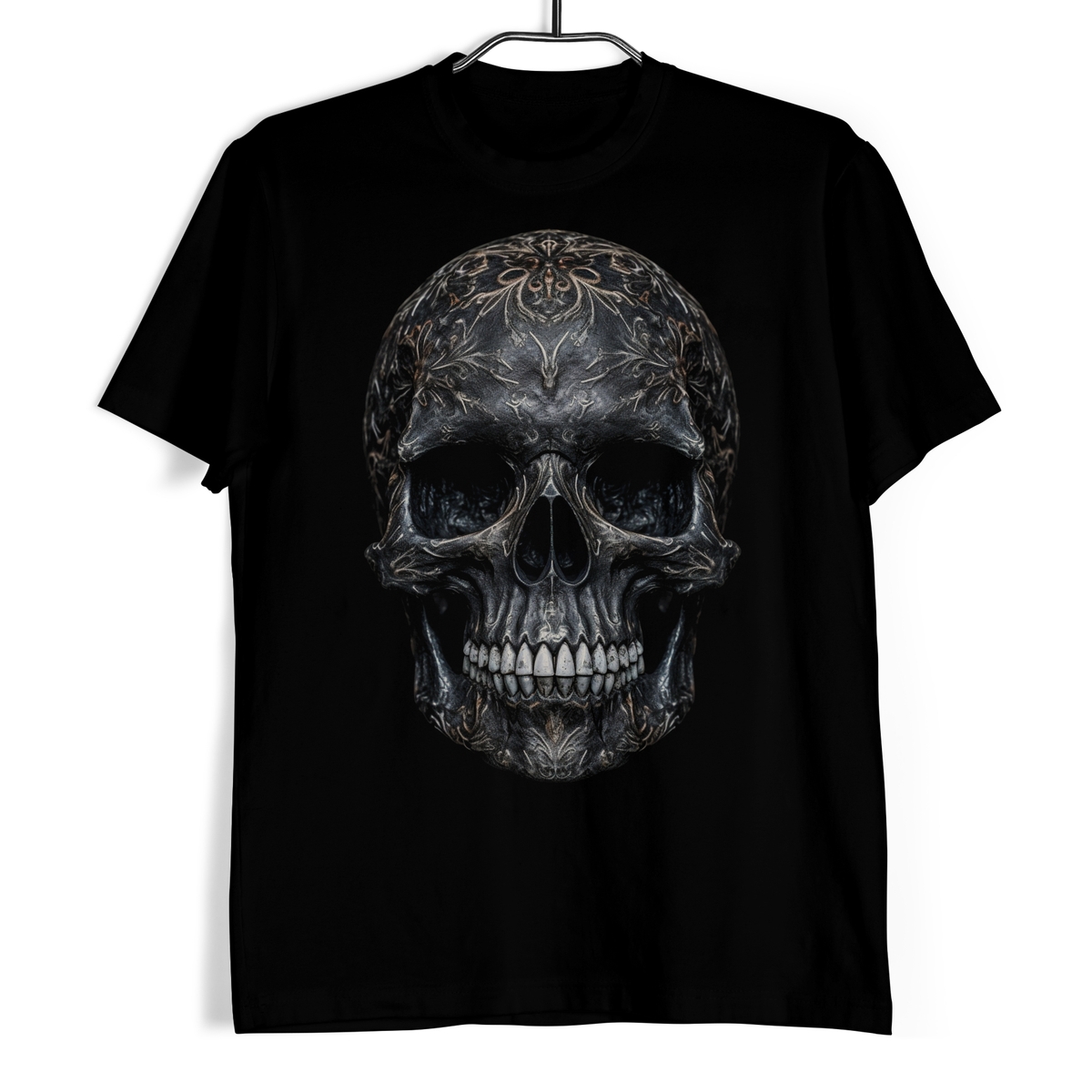 Koszulka męska w kolorze czarnym z nadrukiem zdobionej czachy.