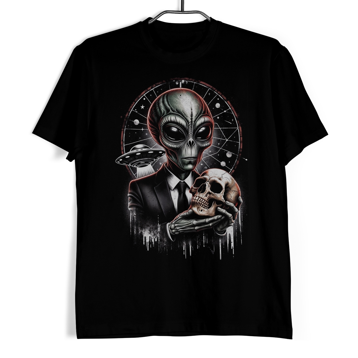 Koszulka męska w kolorze czarnym ze wzorem władającego śmiercią kosmitę.