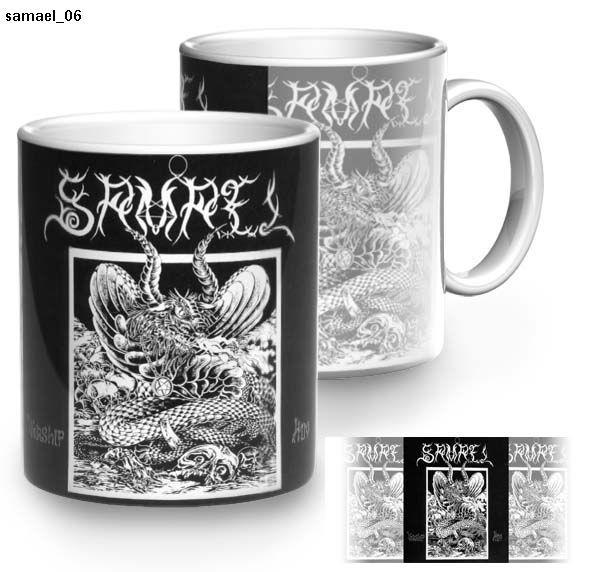 Starannie wykonany kubek z nadrukiem SAMAEL Worship Him