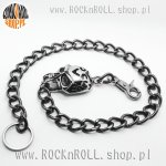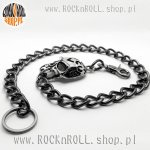 Łańcuch posiada z jednej strony mocny karabińczyk, a z drugiej kółko do zapinania o szlufkę w spodniach.