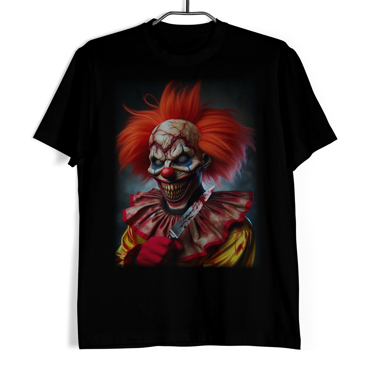 Koszulka męska w kolorze czarnym ze wzorem przedstawiającym morderczego klowna.