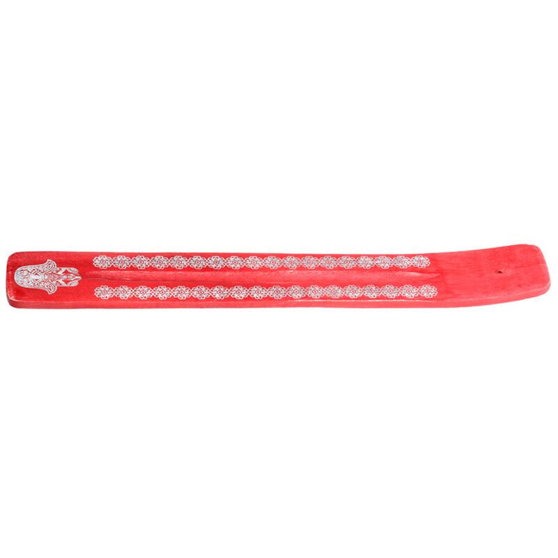 Drewniana podstawka pod kadzidełka ozdobiona ręką Fatimy w kolorze czerwonym