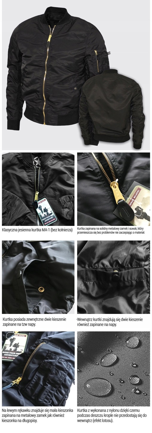MA1 posiada mocne ściągacze przy rękawach oraz w pasie.