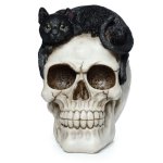 Figurka dekoracyjna "Czaszka z Kotem" to wyjątkowy element, który z pewnością przyciągnie uwagę każdego miłośnika mrocznych akcentów w wystroju wnętrz.